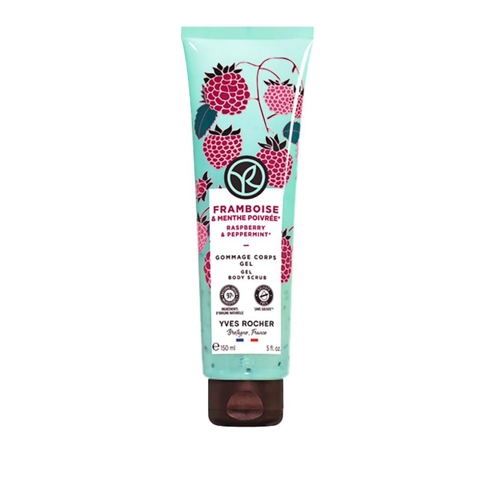Yves Rocher – gélový telový peeling Malina & mäta pieporná | Jemne exfoliuje, vyhladzuje a zjemňuje pokožku a zároveň ju jemne prevonia | 150 ml